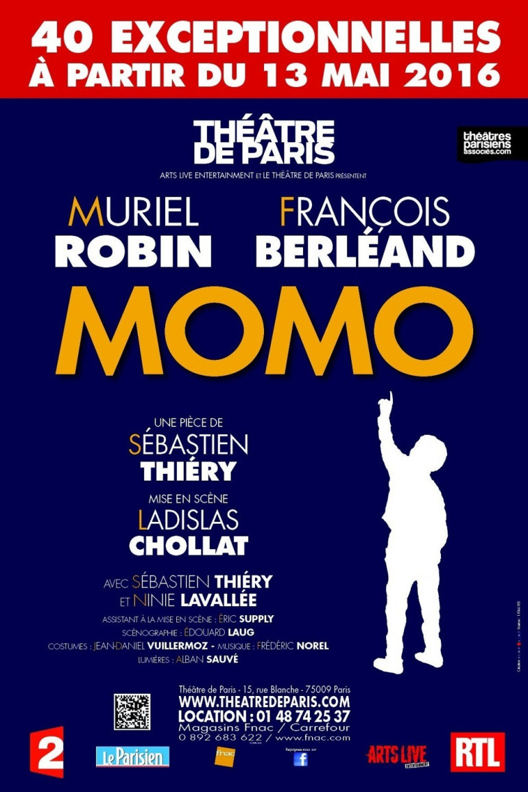 Après 4 nominations aux Molières 2016, de la comédienne pour Muriel Robin, du comédien dans un second rôle, de l'auteur francophone vivant et de la comédie pour Sébastien Thierry, Momo revient au Théâtre de Paris dès le 13 mai prochain, pour 40 représentations exceptionnelles !