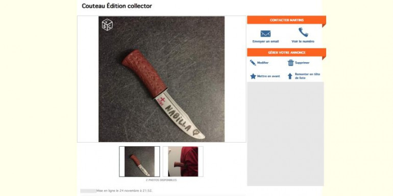 Capture d'écran du couteau trouvé sur le Bon Coin