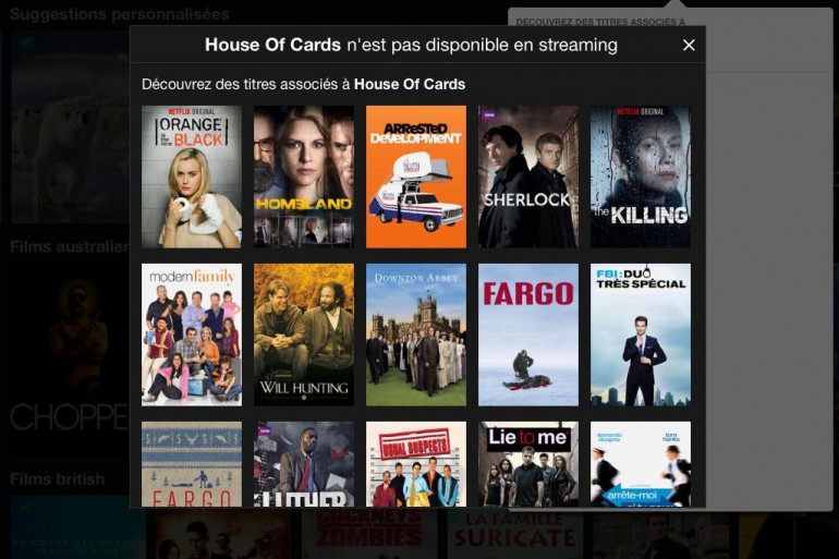La révolution ne réside pas tant dans le catalogue proposé par Netflix que dans son puissant moteur de recherche et son système de recommandations. Le nouvel abonné est invité à renseigner ses programmes, films et séries préférés dès son inscription.