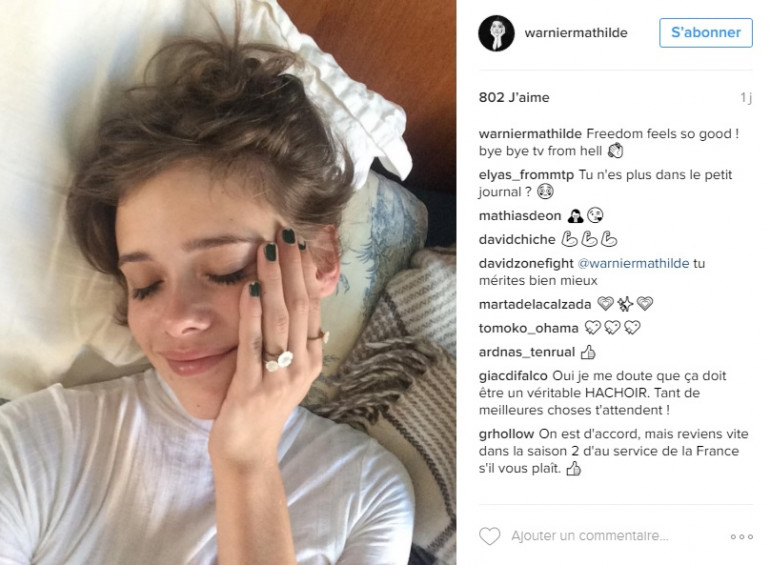 On la voit en train de poser sur son lit, souriante, et une main posée sur la joue. Depuis le 5 septembre et la première du Petit journal nouvelle version, l'émission a essuyé de nombreuses critiques. Au point où il se serait envisagé de tout changer. Comme les abonnés à la page Facebook du programme, l'actrice et mannequin a, elle aussi, décidé de claquer la porte. Mais plus largement, Mathilde Warnier dit au revoir au monde de la télévision.
