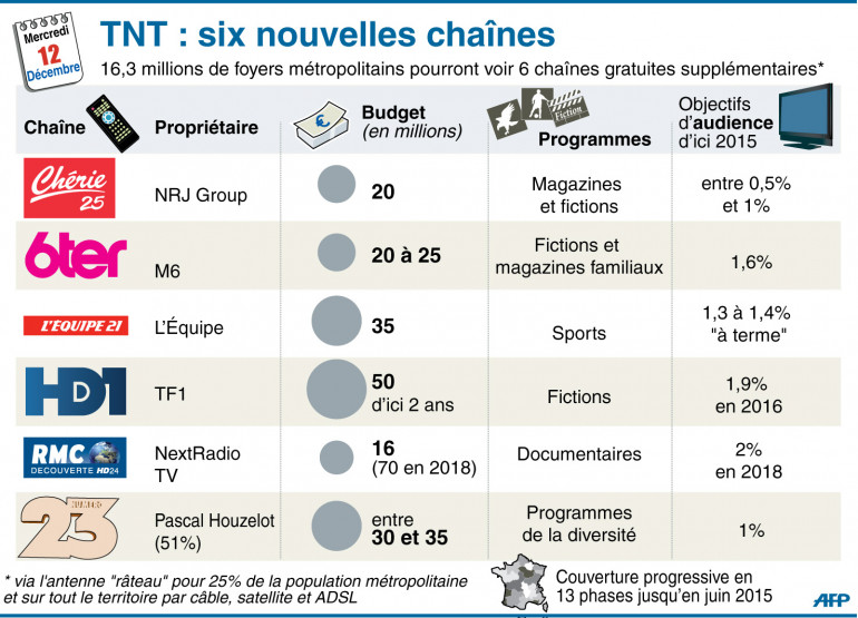 La TNT accueillait 6 nouvelles chaînes le 12 décembre 2012
