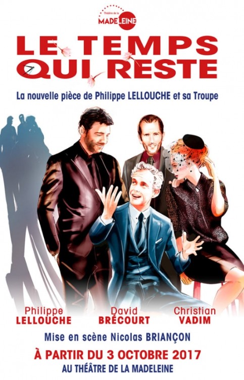 Après le succès de ses précédentes pièces Le Jeu de la vérité 1 et 2 mais aussi Boire, fumer et conduire vite et L’Appel de Londres, Philippe lellouche revient sur les planches avec sa nouvelle comédie Le temps qui reste, mise en scène de Nicolas Brainçon. Et on ne change pas une équipe qui gagne puisque le comédien donne une nouvelle fois la réplique à ses amis Christian Vadim et David brecourt ainsi qu'à Noémie Elbaz, nouvelle recrue dans la bande. La pièce se joue actuellement au Théâtre de la Madeleine.