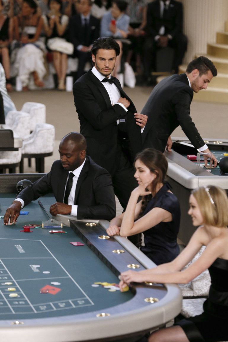 Baptiste Giabiconi et Lily-Rose Depp dans le casino Chanel.