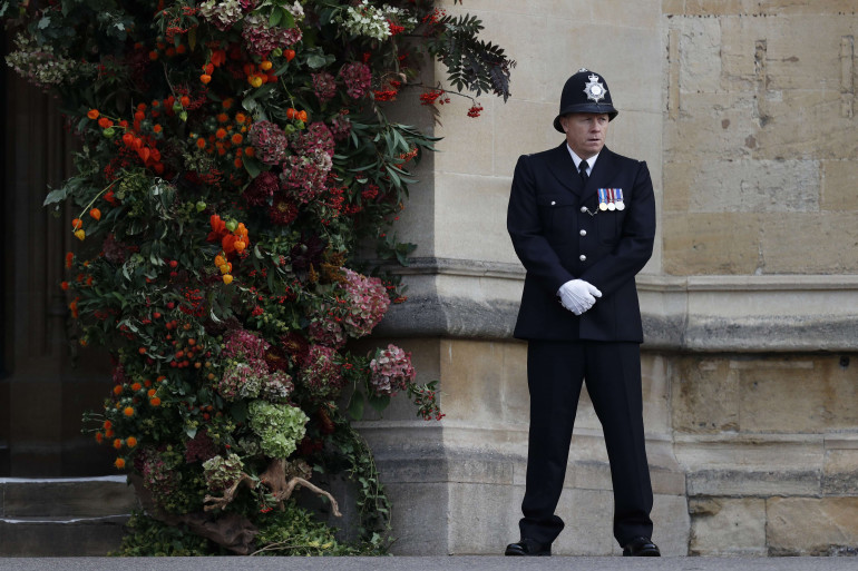 9h30 - Si la présence du public et le dispositif sont moins impressionnants que pour les mariages de William et Harry, les forces de l'ordre encadrent très sérieusement les abords de la chapelle.