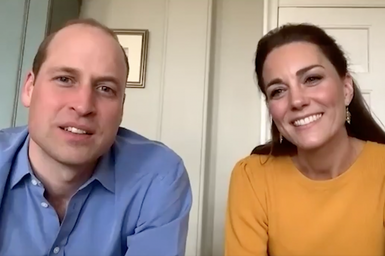 Le prince William et son épouse Kate lors de leur appel vidéo avec une école d'enfants de travailleurs essentiels, mercredi 8 avril 2020