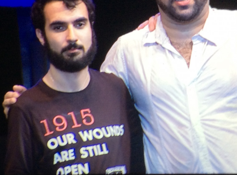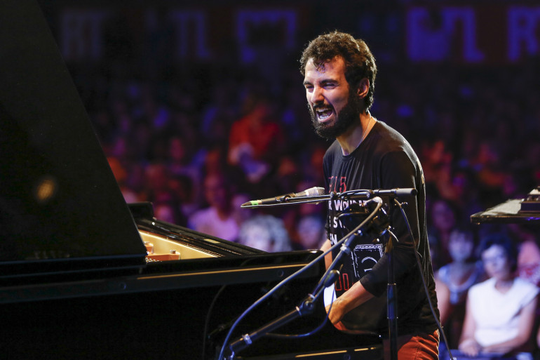 A la vue du Tshirt porté ce soir par le jeune prodige d'origine arménienne, on pouvait deviner que la musique qu'il jouerait ne serait pas simplement excellente. Elle serait littéralement habitée par une rage incroyable. Le visage du pianiste et compositeur couronné par un premier prix de piano jazz du prestigieux Thelonious Monk Institute of Jazz parle aussi pour ses pensées.