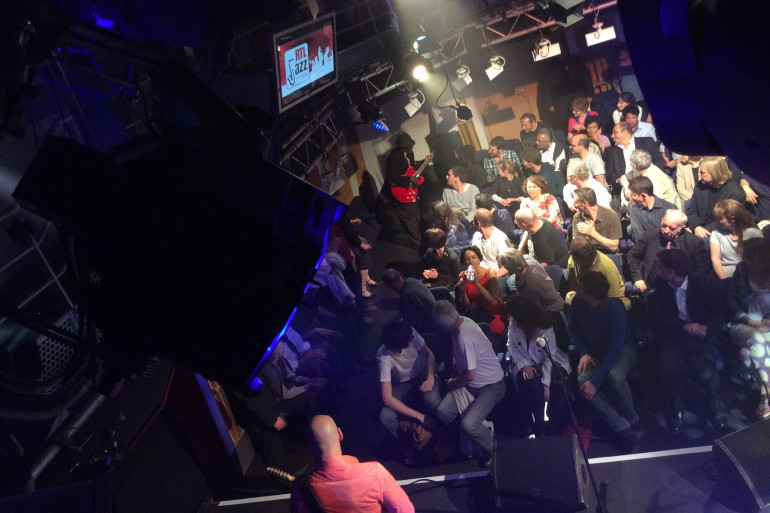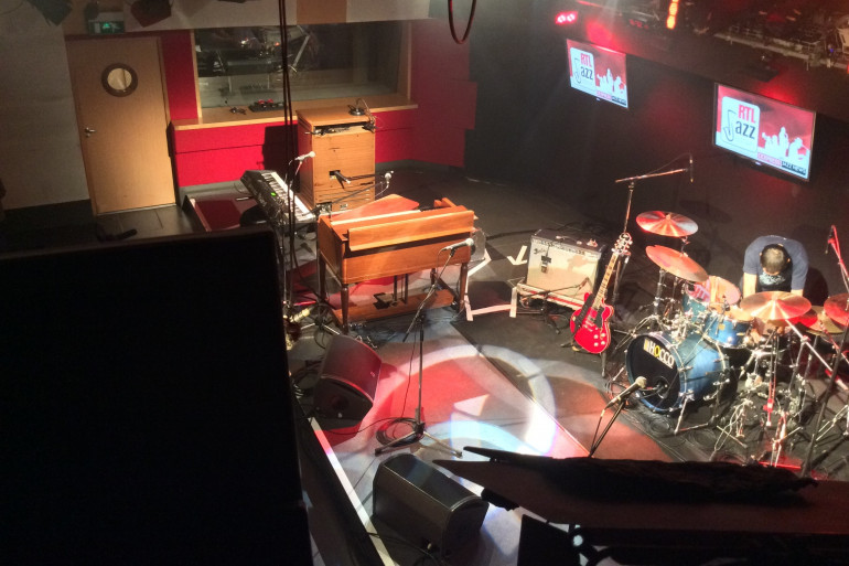 Sur la scène de L'heure du jazz au Grand Studio RTL de la rue Bayard