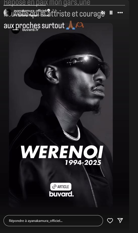"Repose en paix mon gars, une nouvelle qui m'attriste et courage aux proches surtout", a écrit de son côté la chanteuse Aya Nakamura, dans une story Instagram.