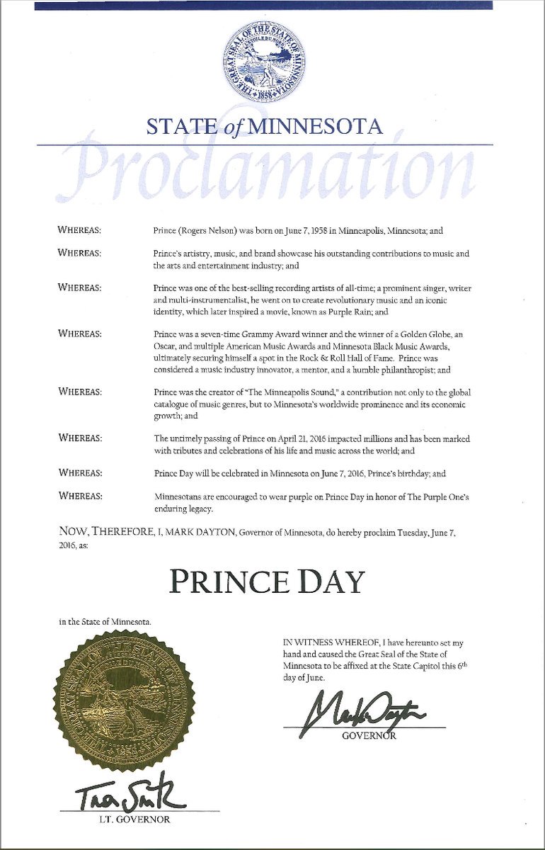 Le Kid de Minneapolis est toujours autant regretté. Il y a un mois et demi, Prince est mort, laissant derrière lui des millions de fans en deuil. Et ce 7 juin, la star aurait dû fêter son 58e anniversaire s'il n'avait pas fait une overdose d'opiacé, le Fentanyl précisément. Alors pour ne pas oublier cette date, le gouverneur du Minnesota, son État de naissance, a décrété ce jour comme le Prince Day. Ainsi, les habitants du Minnesota tout entier sont invités à se vêtir de violet, la couleur fétiche de l'interprète de Purple Rain.