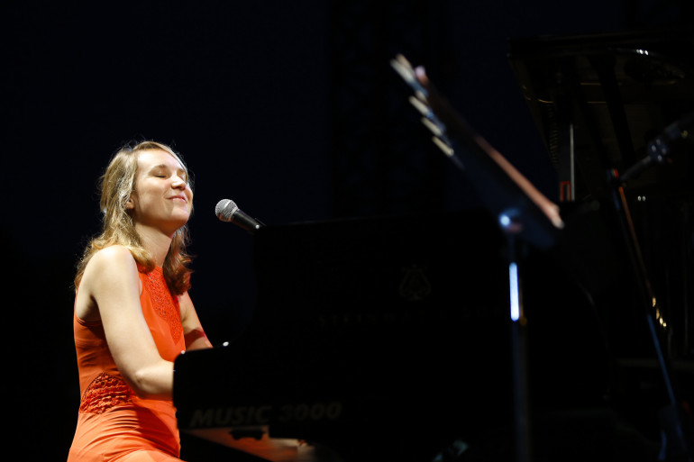 Elle s'appelle Sarah McKenzie, vient d'Australie mais vit désormais aux USA où elle travaille un jazz très swinguant dont l'esprit n'a donc pas échappé à notre lutin britannique préféré, Jamie Cullum. Pieds nus, elle a enchaîné standards éprouvés et compositions tour à tour malicieuses ou sensibles. Elle était entourée d'un trio impeccable, notamment le batteur Greg Hutchinson. Sarah McKenzie a déclaré au public qu'elle était touchée de jouer pour la première fois ici et le jour de la Fête Nationale. Le public de la Pinède Gould lui en a été très reconnaissant.