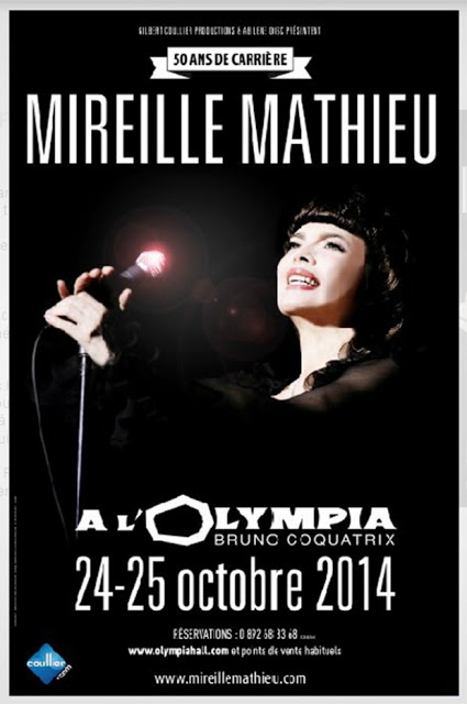 Mireille Mathieu retrouvera son public sur scène pour une tournée française qui passera notamment par l’Olympia à Paris du 24 au 26 octobre 2014.
