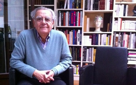 Bernard Pivot dans l'un des deux fauteuils d'Apostrophes qu'il a conservés chez lui