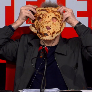 C'est la chandeleur ! L'occasion pour Laurent Ruquier de faire à nouveau "Rouroute". Une tradition qui consiste à mettre la crêpe sur son visage et faire trois trous aux niveaux des yeux et de la bouche. Et les Grosses Têtes ont participé !