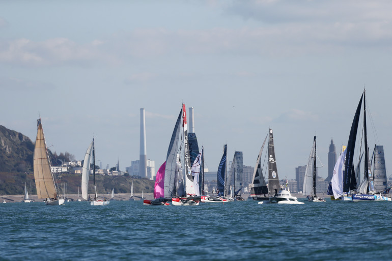 Et à la surprise générale, c'est le tandem Fabrice Amédéo et Éric Péron qui a tiré son épingle du jeu, le monocoque IMOCA Newrest-Matmut réussissant à franchir le premier la ligne de départ quelques secondes après le coup de canon. Après avoir fait route vers Étretat et une bouée contournée en premier par le Trimaran Macif de François Gabart et Pascal Bidégorry, les voiliers ont pris le large pour sortir de la Manche dans des conditions météo toujours aussi peu venteuses, ce qui ne sera pas le cas pour les jours à venir puisque une mer très formée avec des creux de 5 à 8 mètres est annoncée dès lundi midi.