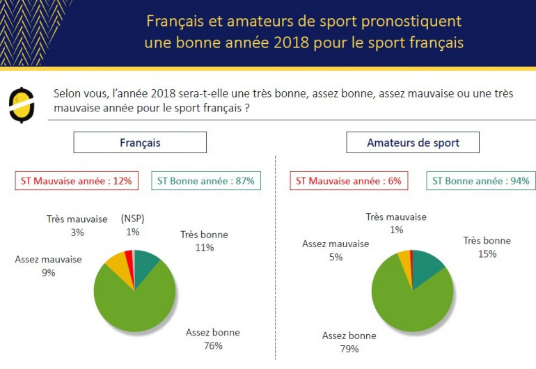 2018 sera-t-elle aussi belle ? Les Français sont optimistes. 87% d’entre eux et même 94% des amateurs de sport pronostiquent une bonne année pour le sport français. Le champ des possibles est vaste, à commencer par les JO d’hiver dès le mois de février durant lesquels les sportifs français devraient briller.