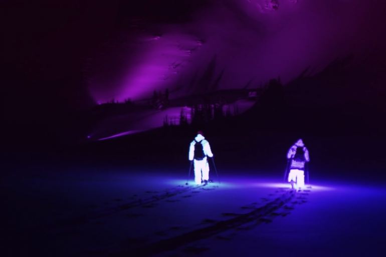 Avant la publication de ce film de 10 minutes dimanche 19 octobre, les trois premières minutes sont dévoilées. Munis de combinaisons entièrement composées de LED colorées, les quatre skieurs arpentent en pleine nuit les montagnes d'Alaska et de la Colombie Britannique, référence en terme de freeride.