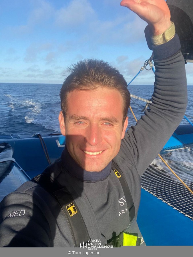 Il s’agit de la première marque symbolique de ce tour du monde. Tom Laperche a été suivi 1h28mn plus tard par Charles Caudrelier sur le Maxi Edmond de Rothschild.