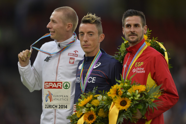 Yoann Kowal, Krystian Zalewski, et Angel Mullera sur le podium des championnats d'Europe 2014
