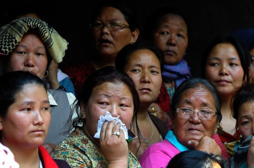 Les familles népalaises lors de la cérémonie de crémation des corps, le 21 avril 2014