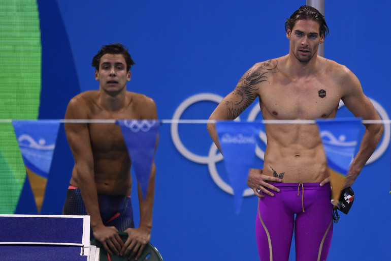 Théo Bussière et Camille Lacourt le 12 août 2018 à Rio