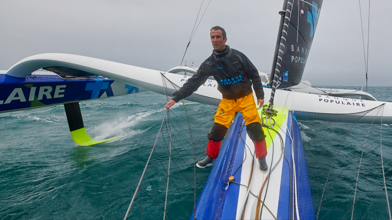 Armel Le Cléac'h sur son bateau Maxi Banque Populaire IX