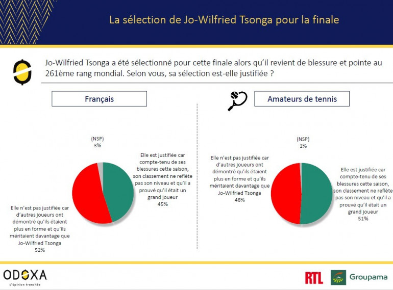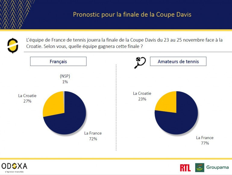 Conscients que le niveau a baissé cette saison, les Français demeurent tout de même très optimistes pour leur équipe face à la Croatie. 72% des Français et même 77% des amateurs de tennis pronostiquent une victoire.