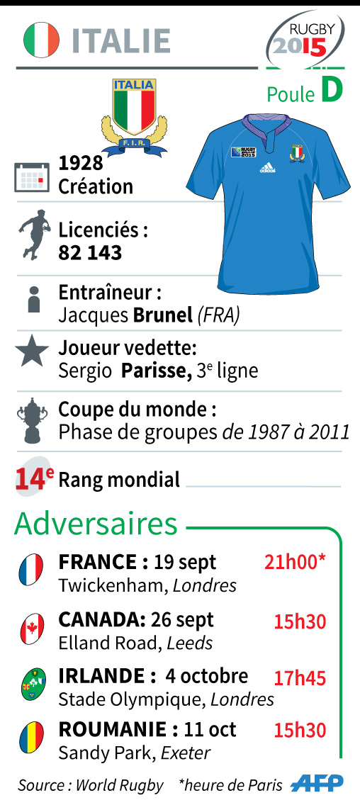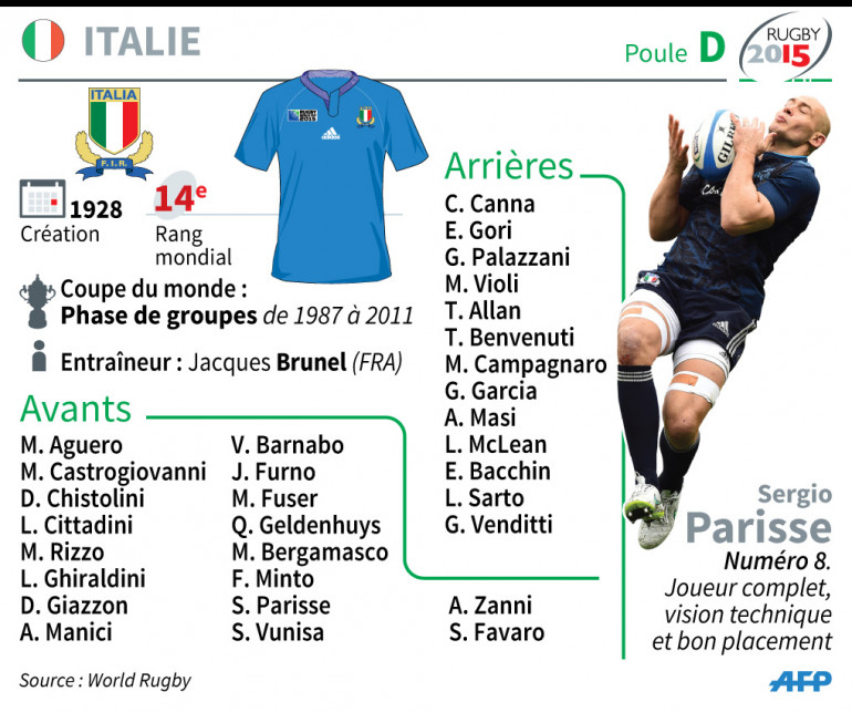 Le groupe de l'Italie pour la Coupe du monde de rugby 2015