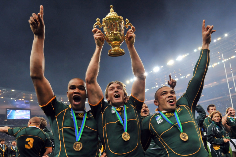L'Afrique du Sud rejoint l'Australie au rang des nations sacrées à deux reprises après avoir écarté (15-6) l'Angleterre au terme d'une finale verrouillée au Stade de France. Si la France est le principal pays hôte de cette sixième édition, quelques matches ont lieu au Pays de Galles et en Écosse.