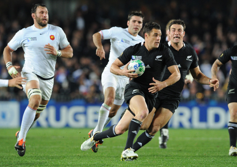 Daniel Carter sous les yeux de Dimitri Yachvili et Lionel Nallet le 24 septembre 2011