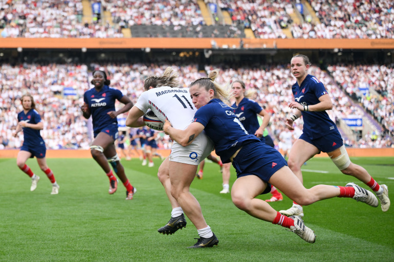 Le XV de France féminin lors d'un match contre l'Angleterre pendant le Tournoi des Six Nations 2025
