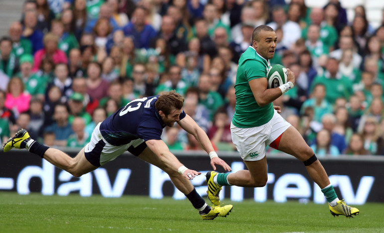 L'Irlandais Simon Zebo face à l'Écosse en match amical