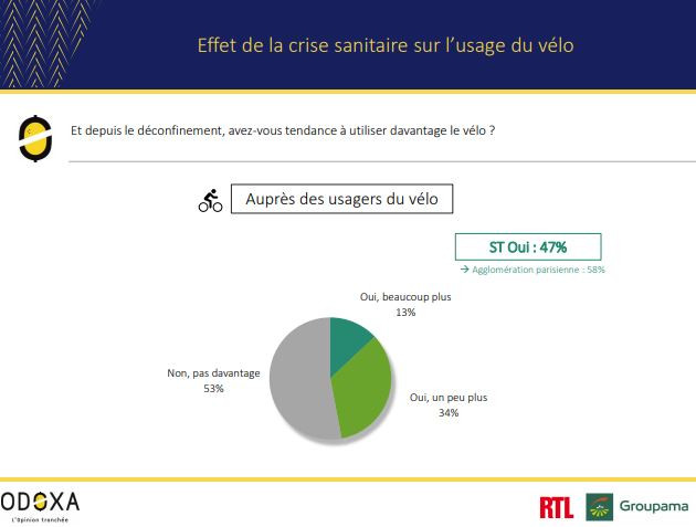 Parmi ces usagers, 47% nous indiquent qu’ils ont eu tendance à utiliser davantage le vélo depuis ces dernières semaines, signe supplémentaire que le vélo est à la mode dans "le monde d’après".