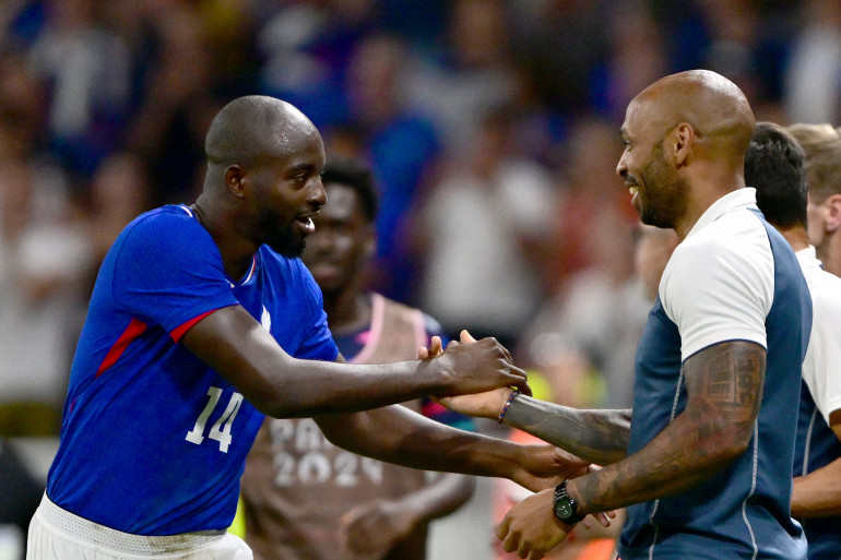 Thierry Henry célèbre le deuxième but des Bleus lundi soir face à l'Égypte au Stade de France.