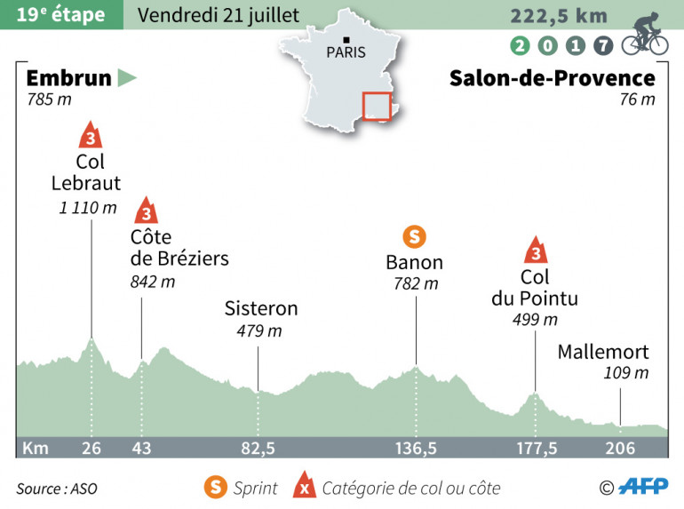 Le profil de la 19ème étape, entre Embrun et Salon-de-Provence