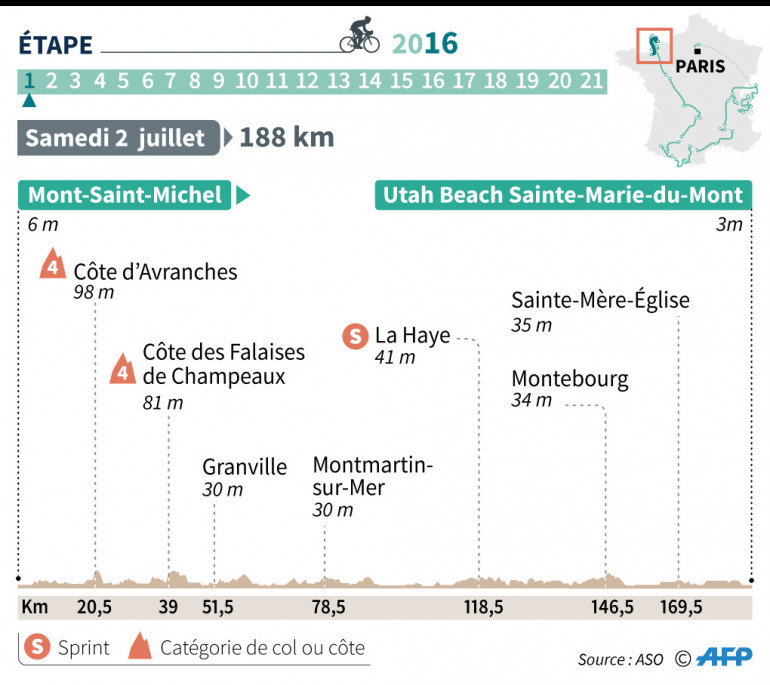 2 juillet : 1re étape Mont-Saint-Michel - Utah Beach Sainte-Marie-du-Mont, 188 km