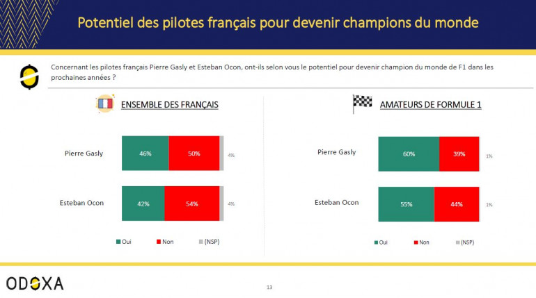 Ainsi, 46% des Français et 60% des amateurs de Formule 1 estiment que Gasly a le potentiel pour devenir champion du monde de Formule 1 au cours des prochaines