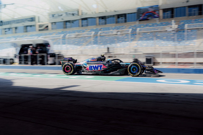 L'Alpine srur le circuit de Skahir le 22 février 2024