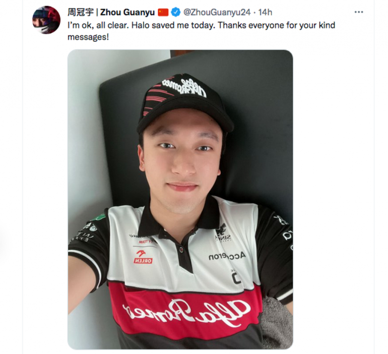 "C'était un gros accident et je suis heureux de m'en sortir, a rassuré le pilote Alfa Romeo. Je dois également remercier la FIA et la Formule 1 pour tout le travail qu'elles ont accompli et qu'elles continuent d'accomplir, pour améliorer la sécurité de nos voitures : le halo m'a sauvé aujourd'hui, et cela montre que chaque mesure que nous prenons pour améliorer nos voitures donne des résultats concrets et précieux.