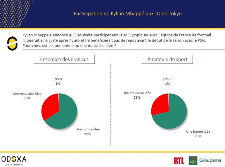 Espérant probablement que le prodige parisien guiderait ses coéquipiers vers la victoire à Tokyo, les deux tiers d’entre eux (66%) et 71% des amateurs de sport jugent que c’est une bonne idée. D’ici là, il faudra convaincre le PSG qui ne voit évidemment pas la gourmandise de sa star d’un très bon œil.