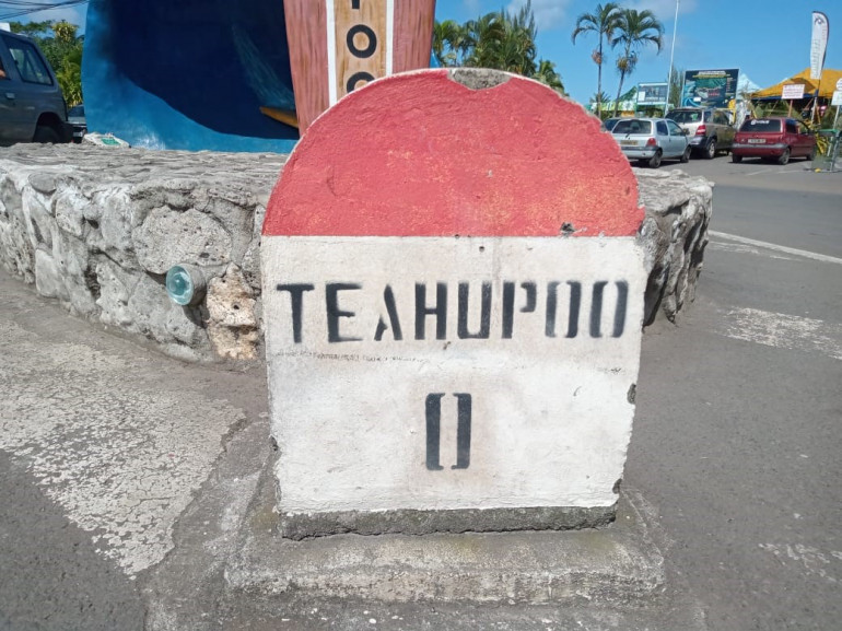 Tout au bout de la route, au point kilométrique zéro, s'érige une sculpture en forme de grande vague. Nous sommes sur la plage de Teahupoo et Roniu Poareu, la maire de la ville, assure la visite : "On se trouve vraiment au fin fond de l'île, il y a 1.500 habitants. Après le pont, plus de routes, c'est notre plus grand paradis, ici, dans notre petit coin, là, au bout du monde, c'est vraiment un wow. En fait, c'est juste à cause de cette vague là."