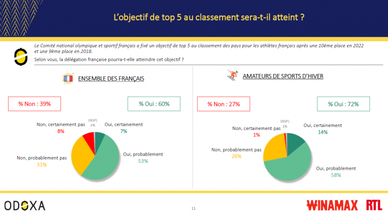 Voici les principaux enseignements du dernier sondage réalisé par Odoxa pour Winamax et RTL. L'enquête a été réalisée selon la méthode des quotas, sur internet, le 7 et 8 janvier 2026 auprès d'un échantillon de 1.005 personnes représentatives de la population française âgée de 18 ans et plus, dont 409 amateurs de sport d'hiver.