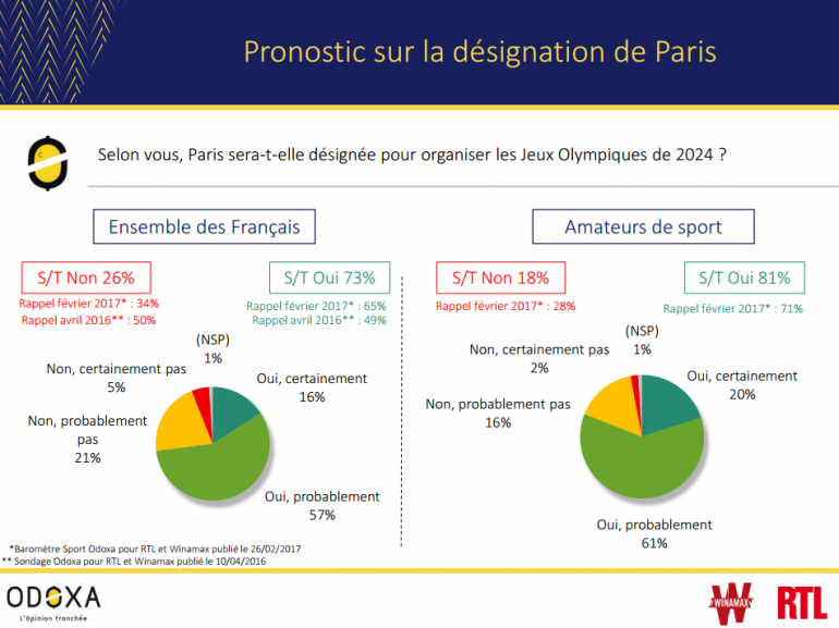 73% des Français pensent que Paris sera désignée ville hôte des JO 2024.