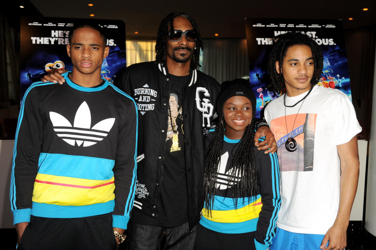 Snoop Dogg entouré de ses enfants Cordell Broadus, Cori Broadus et Corde Broadus. Snoop Dogg entouré de ses enfants Cordell Broadus, Cori Broadus et Corde Broadus, le 16 juillet 2013 (archives)