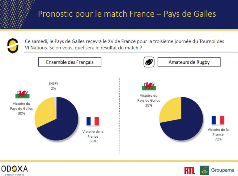 Les Français et les amateurs de rugby veulent y croire. Ils sont respectivement 68% et 72% à pronostiquer la victoire des Bleus à Cardiff. Ce résultat placerait la sélection dans la meilleure des configurations pour la victoire finale dans le Tournoi.