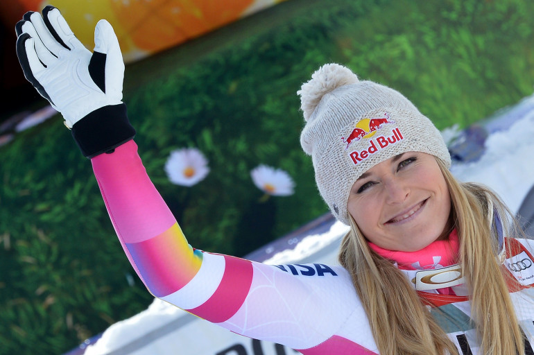 Lindsey Vonn après sa 62e victoire en Coupe du monde, le 18 janvier 2015