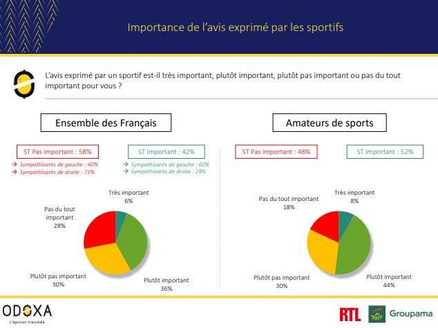 Mais ces prises de parole, généralement plus "progressistes" que "conservatrices" touchent davantage les sympathisants de gauche, souvent déjà convaincus par la cause soutenue par un sportif, que ceux de droite. L’avis d’un sportif est, en effet, important pour 60% des premiers contre seulement 29% des seconds.