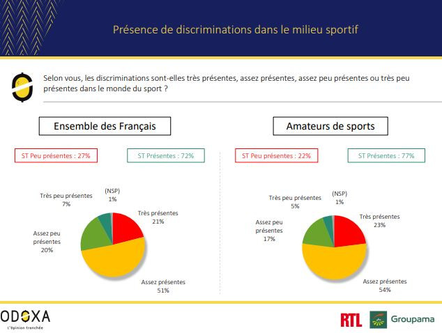 Et pourtant, il semblerait qu’il reste beaucoup de travail à faire selon nos concitoyens. 72% des Français et 77% des amateurs de sport jugent en effet que les discriminations sont présentes dans le monde du sport. Entre les cris de singe entendus dans certaines tribunes et les stéréotypes associés à des joueurs en fonction de leur origine, de nombreuses polémiques ont, par exemple, touché le football très récemment.