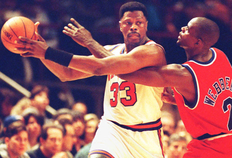 Patrick Ewing avec les Knicks de New York face à Chris Webber (Washington Bullets) en décembre 1994