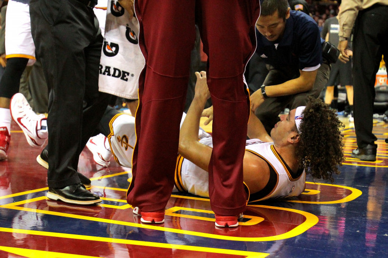 Varejao s'est effondré sous le panier pendant le troisième quart-temps du match, remporté par les Cavaliers 125-104, alors qu'il s'apprêtait à aller à la lutte au rebond.