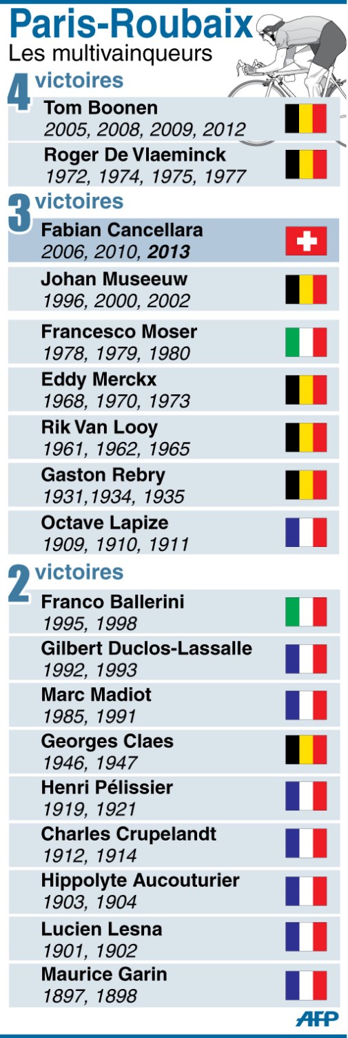 Paris-Roubaix : les coureurs qui se sont imposés au moins deux fois